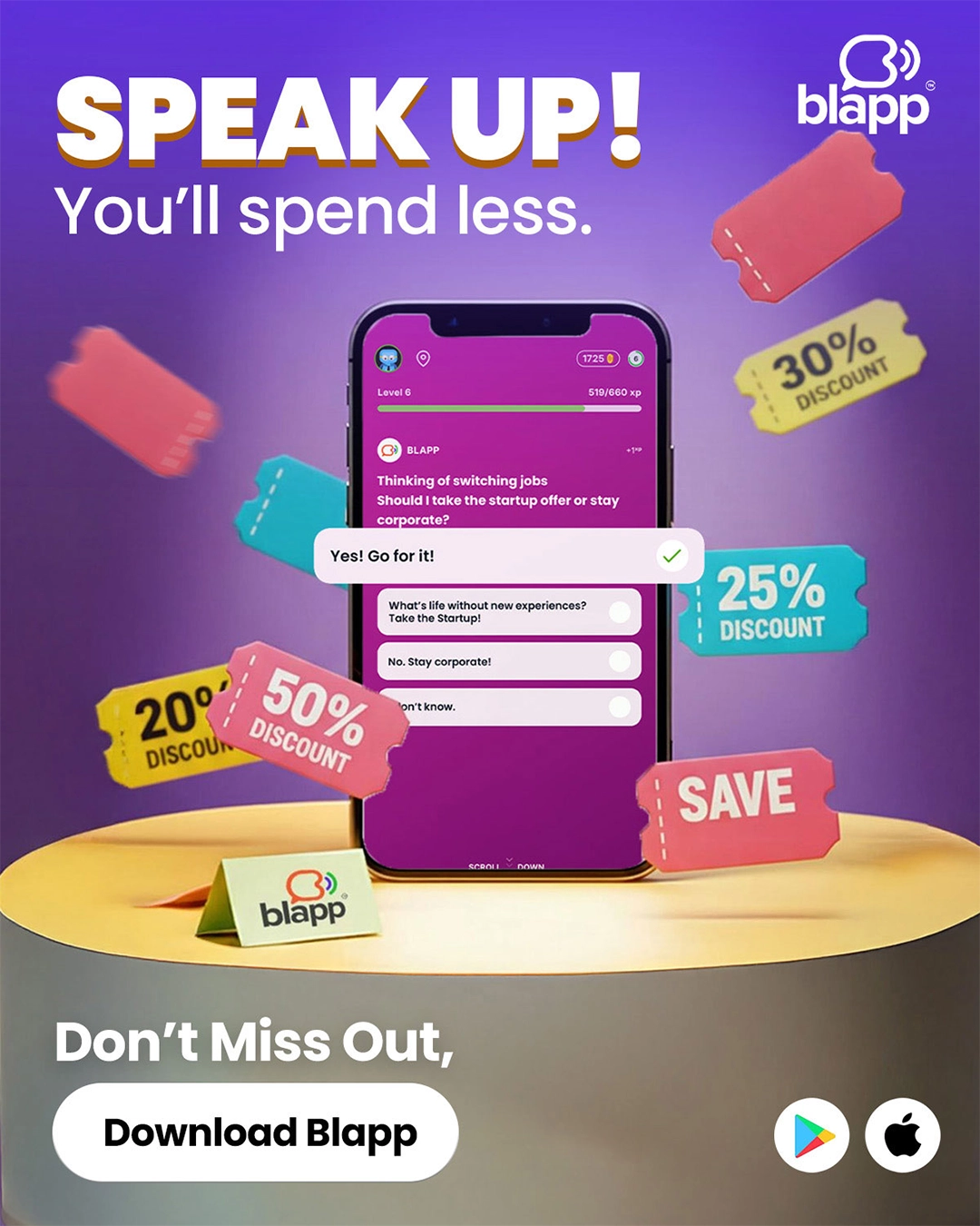 Our mission was to help Blapp reach new users, simplify the app’s value, and spark curiosity about their everyday rewards. We focused on creating ads that felt fast, colorful, and eye-catching. These ads aimed to make people pause, smile, and want to learn more.